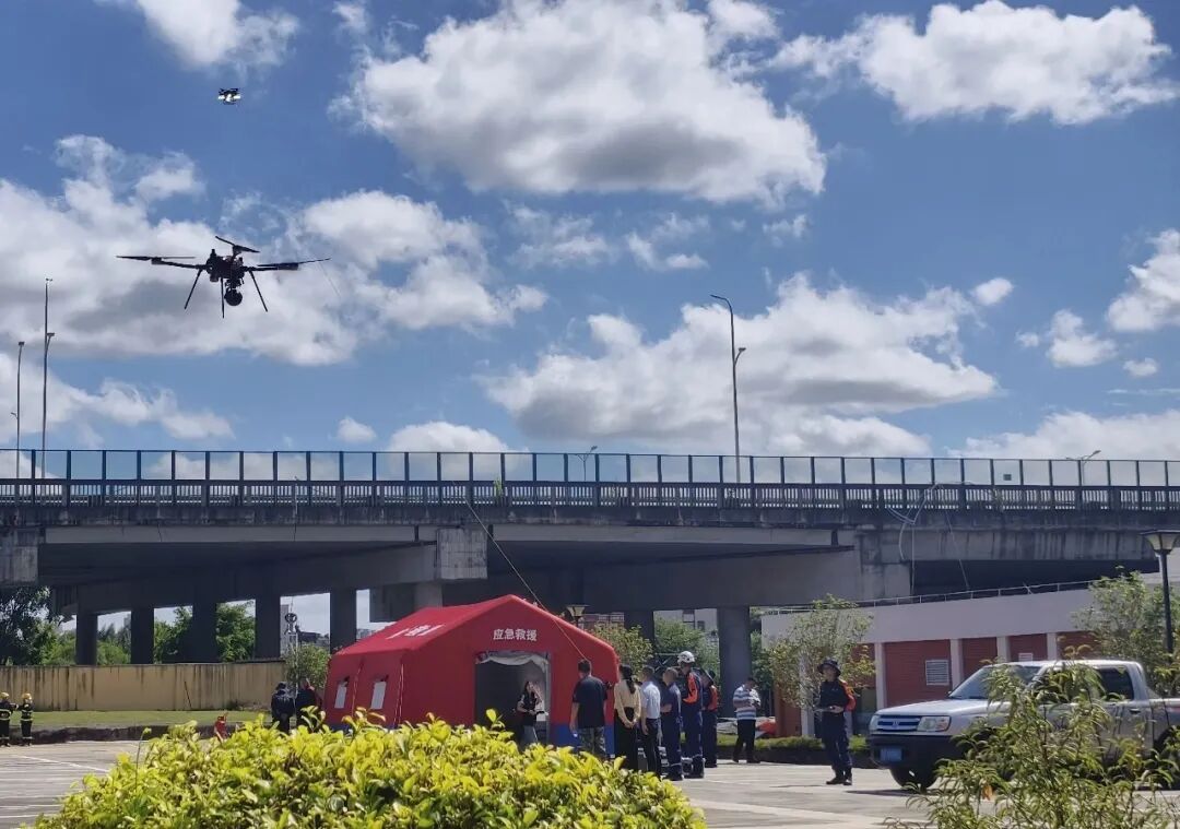 演練現場,伙食保障單元、野外炊事單元,在規定時間內,迅速完成指定保障科目,動作熟練、演練高效。應急救援區與裝備展示區,急救人員現場演示除顫儀操作流程,傳授急救技巧;技術保障人員對故障車輛實時搶修,快速完成故障排除。演練還特別邀請廈門519救援隊和戎衛救援隊,分別進行野外帳篷搭建、無人機投送和火情處置演練。