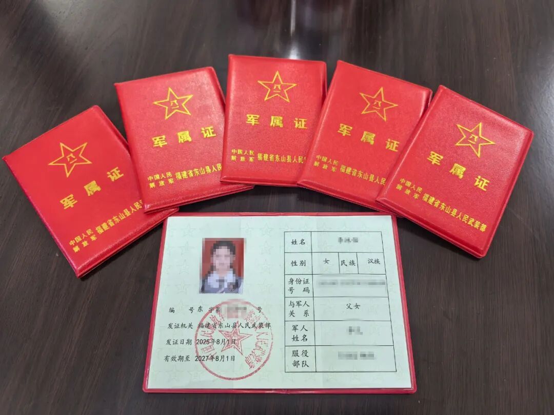 入秋的福建省東山縣,空氣中略帶海風的咸澀。軍屬林宏芳帶著6歲的兒子站在縣人民醫院門診大廳,望著眼前的長隊,忍不住嘆氣。孩子突發高燒,她請了假帶著孩子匆忙趕來,心里很是著急。 “我怎么證明自己是軍屬?總不能天天把結婚證帶在身上吧?” 2025年初,東山縣人武部在走訪駐島部隊時,不少軍屬反映了同樣的難題?!熬皡^門票優惠要證明”“醫院優先窗口要證明”“甚至去銀行申請開通‘綠色通道’也要證明”…… 每一個“證明”背后,都是軍屬們日常生活中的不便。 “只有真正用心用情為軍屬解決實際問題,才能讓軍人無后顧之憂地全身心投入練兵備戰?!笨h人武部政委李濤在座談會上語氣堅定,“我們必須設計出一張真正專屬、真正好用、真正被認可的軍屬證?!?/p> 決心既定,行動迅速展開??h人武部隨即成立工作專班,目標是打造一張讓軍屬“一證在手、全程無憂”的證件。 但難題接踵而來。誰來發證?發給誰?經多次研討,最終確定發證對象為現役軍人的配偶、子女、父母及配偶父母,覆蓋軍人最核心的家庭成員。證件由縣人武部統一印制、編號和備案,確保其權威性。 在信息格式的設計上,經歷3個版本的迭代打磨,最終確定只體現軍人姓名及部隊代號、與軍人關系等信息,并采用個人證件照片加蓋鋼印,輔以縣人武部紅色印章的形式,既簡潔莊重,又能有效防止信息泄露,同時彰顯權威。這一設計贏得了軍屬們的好評。