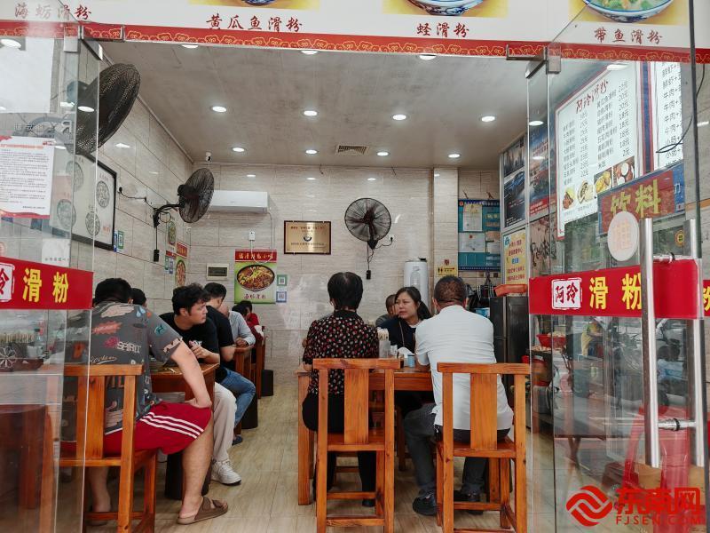 阿玲滑粉店內(東南網福清站記者王倩雯 攝) 中午十一點半,阿玲滑粉店內坐滿了人,服務員端著碗穿梭在餐桌間,偶爾還要回應顧客“加份小吃”的要求。 “我們開了快10年了,都是老顧客多?!钡曛鲗O先生介紹,“每天早上起來準備食材,滑粉都是手工做的,客人吃得放心,我們也踏實?!?/p>