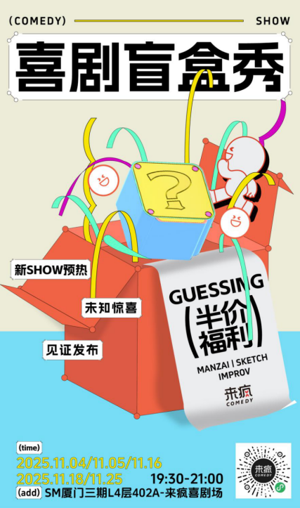 時間:11月4日、5日、16日、18日、25日19:30-21:00<br/>地點:SM廈門三期L4層402A-來瘋喜劇