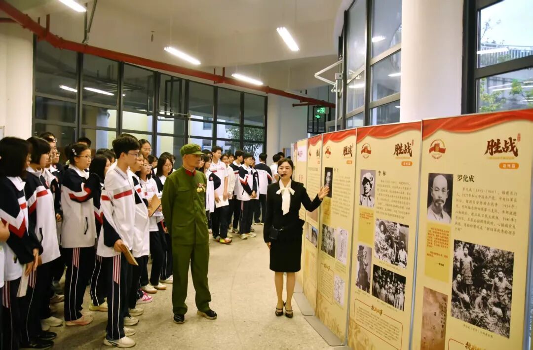 以巡展營造沉浸式學習氛圍 活動現場,33塊記錄著抗戰英烈、愛國人士英勇事跡的“勝戰·2025—八閩抗戰英烈事跡巡展”展板依次排開,形成了一條生動的“抗戰烽火歷史長廊”。一幅幅烈士圖片、一段段抗戰故事,瞬間將師生們帶入那段山河破碎的歲月。講解員講述了每一位抗戰英烈和愛國華僑、愛國人士的抗戰壯舉,積極與學生開展互動,讓偉大的抗戰精神在新時代少年的心中生根發芽。