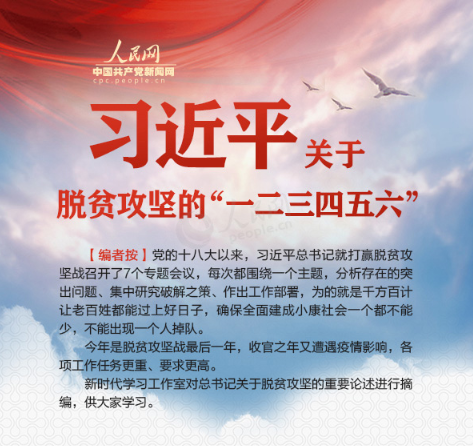 習近平在《關于全面建成小康社會補短板問題》文章中指出,“對照‘兩不愁三保障’要求,4個方面問題比較突出”,其中之一是“貧困家庭孩子輟學問題”。[詳細]