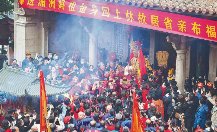 10日,“媽祖元宵·故里祈?!薄獌砂毒囱稣咦o駕湄洲媽祖金身回上林故居省親布?;顒釉谄翁镤刂迧u舉行。[詳細]