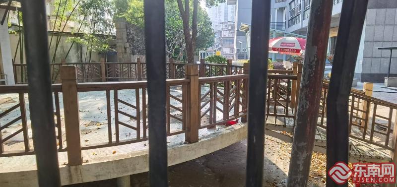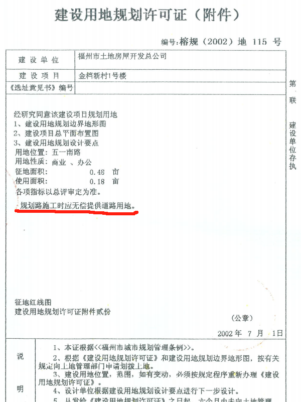 穎源大廈用地許可證上寫明“應無償提供道路用地”。(臺江區自然資源和規劃局供圖) 堵點3:金尊名都小區圍墻及活動平臺怎么拆? 聯發臻品小區北側規劃路的西頭,是金尊名都小區用鐵欄桿樹起的圍墻,欄桿圍起的區域內建設了一個圓形的活動平臺。這些設施的拆除成為聯發臻品小區配套路建設的又一堵點。 臺江區建設局市政科徐佳向記者表示,金尊名都小區圍起的這部分區域占用了道路紅線,由于歷史遺留原因被一直占用,修路時居民不同意退讓?!靶^的圖紙上都是有標注的,按理說修路時要無條件退讓出來,我們在道路施工時可以一并拆除,并按照道路紅線將小區圍墻修建到位。業主什么都不用做,但他們仍然不樂意,導致道路這一端也無法修建?!毙旒颜f。 據了解,此處圍墻和活動平臺并不屬于征遷范圍,也就是未經正式認定的“違建”。然而,金尊名都小區的居民都認為該區域是小區的范圍,不允許拆除?!熬用駛兌急容^激動,投訴件非常多,”孫朝丹告訴記者,“我們做了很多工作,暫時沒什么進展?!?/span>